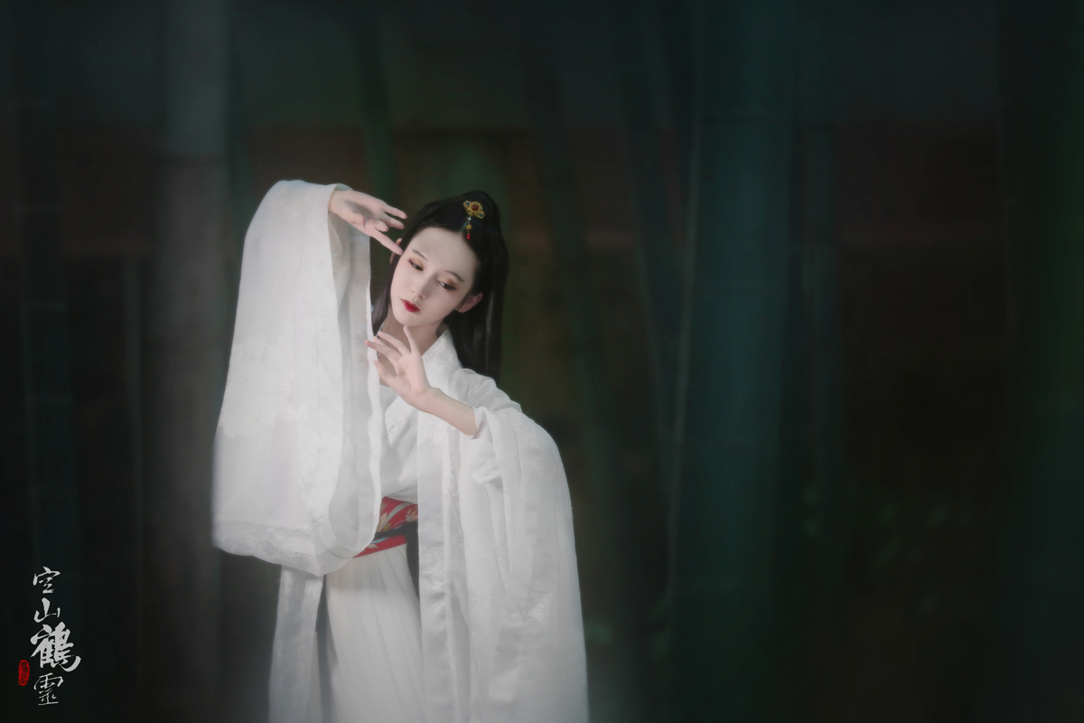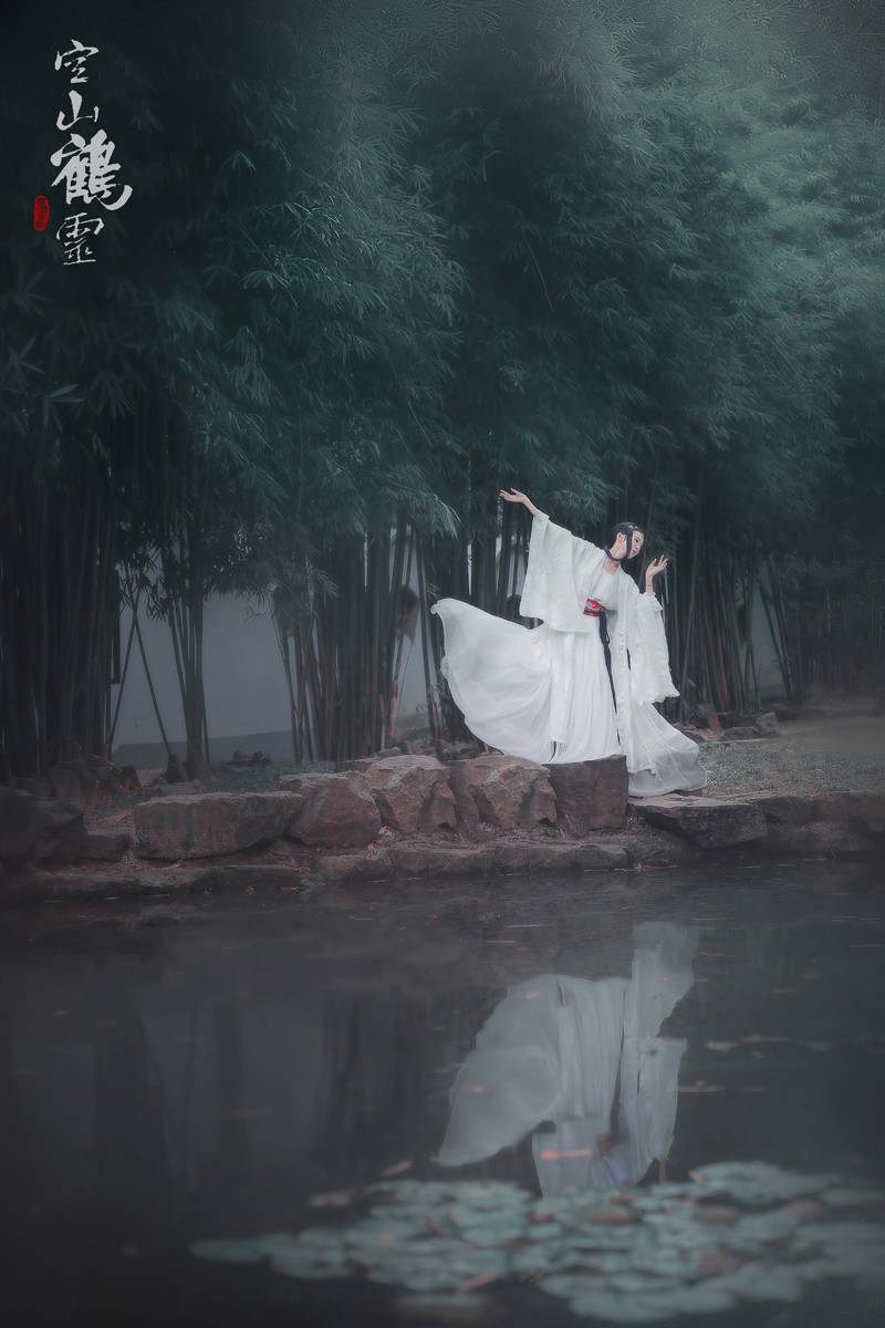 《空山鹤灵》:睡轻旋觉竹叶落,舞罢闲听涧水流。襦裙华光欺白雪,风神洒落占高秋。