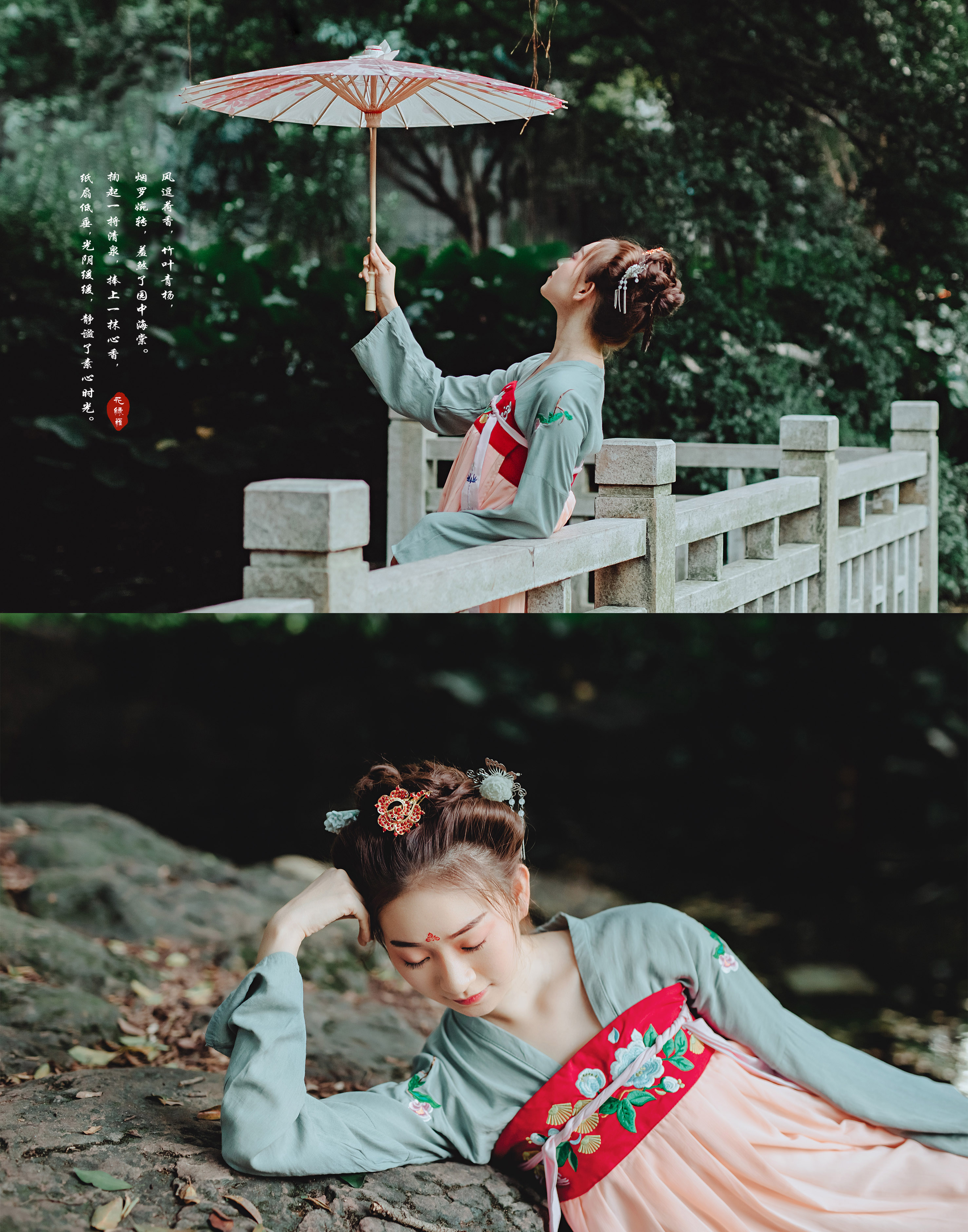 风逗荷香,<br>竹叶青杨,烟罗婉转,羞煞了园中海棠。<br>掬起一捋清泉,捧上一抹心香,<br>纸扇低垂,光阴缓缓,静谧了素心时光。<br>文案/@花绿罗 摄影/@娇娇CHOO