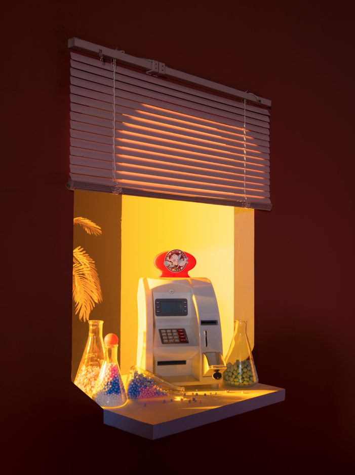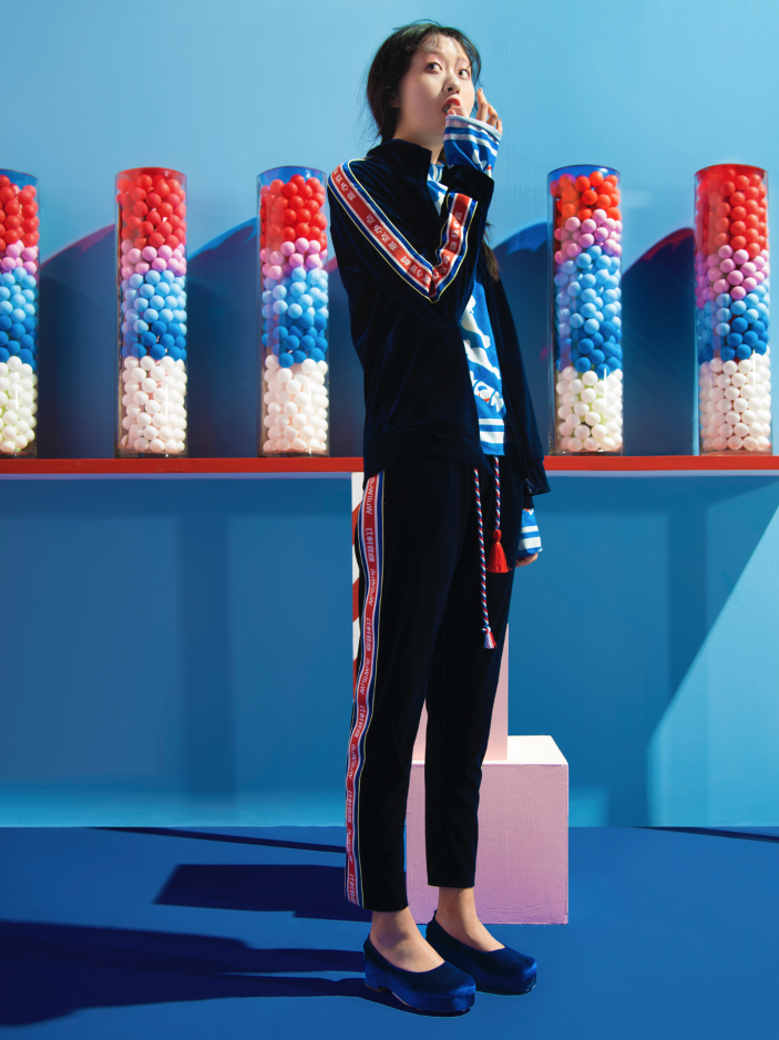这次根据密扇服装品牌这季的内容创意来源-经典大白兔奶糖,我们用糖球、等甜品内容,营造出一个简约设计感的糖果店。