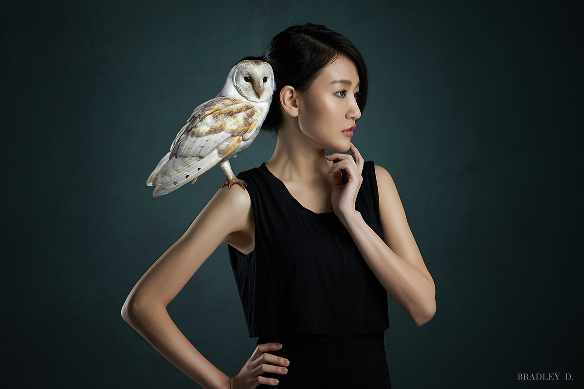 這是在棚內攝影的練習作品。在處理圖片時,發現這個姿勢很適合在肩上放個動物,所以後來選用較稀有的貓頭鷹放置在右肩上,意外覺得很搭,所以之後陸續想發展女孩與各種將瀕臨絕種的生物來做成一個系列組合。 執行了攝影、打光、後製作、合成、調色、排版。