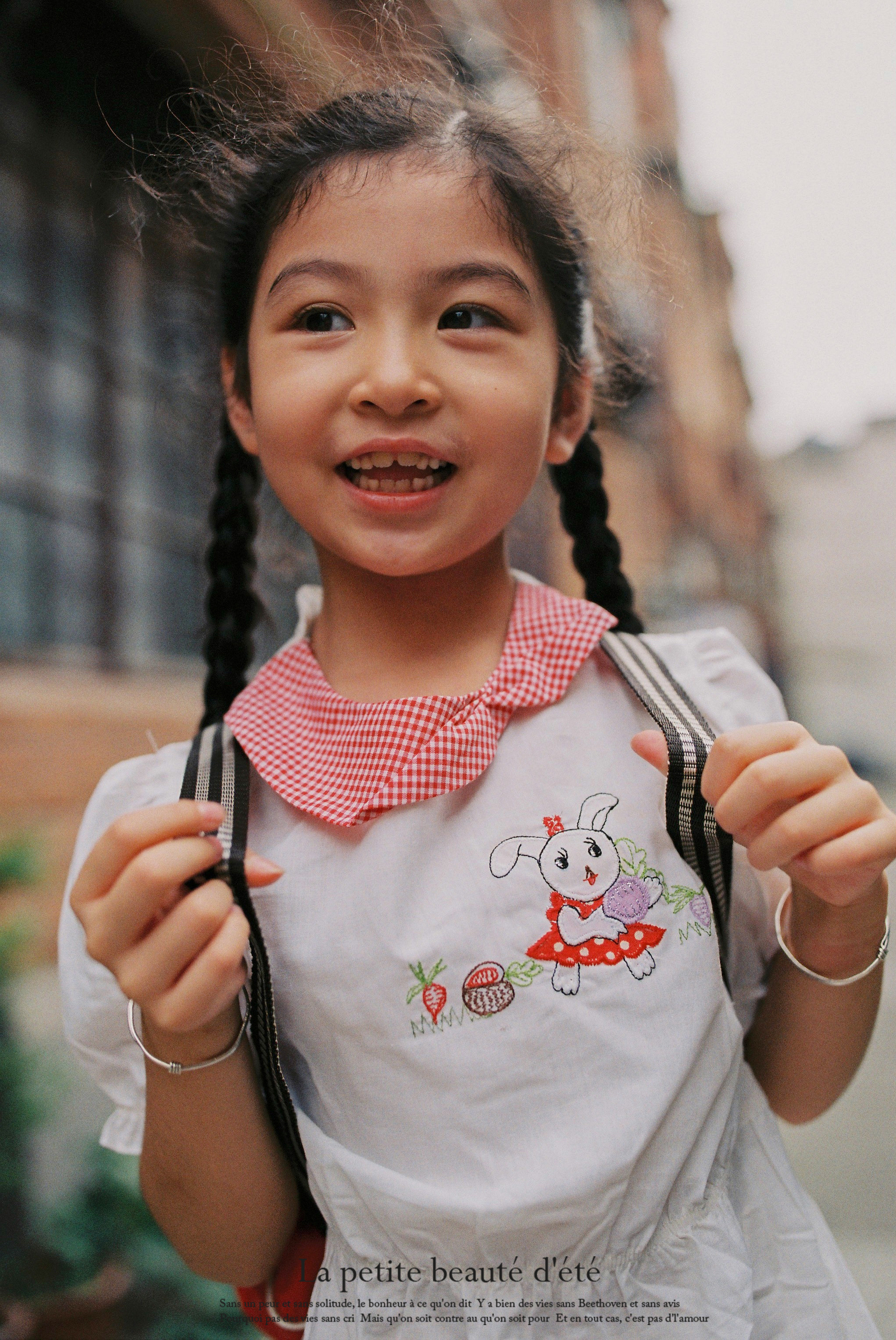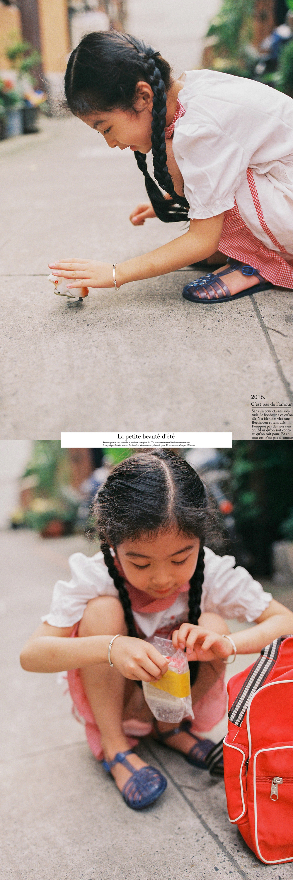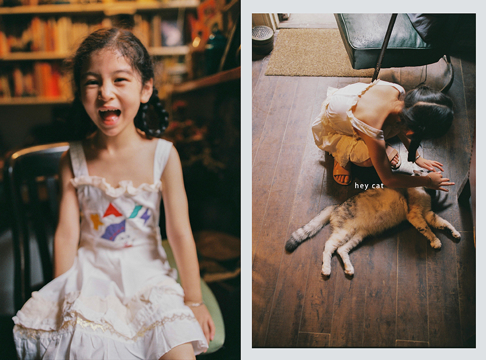 所以,夏天的最后一次相聚,小米穿上了我小时候的裙子,背上了旧书包,拉着我蹦蹦跳跳在上海的一条老弄堂里。