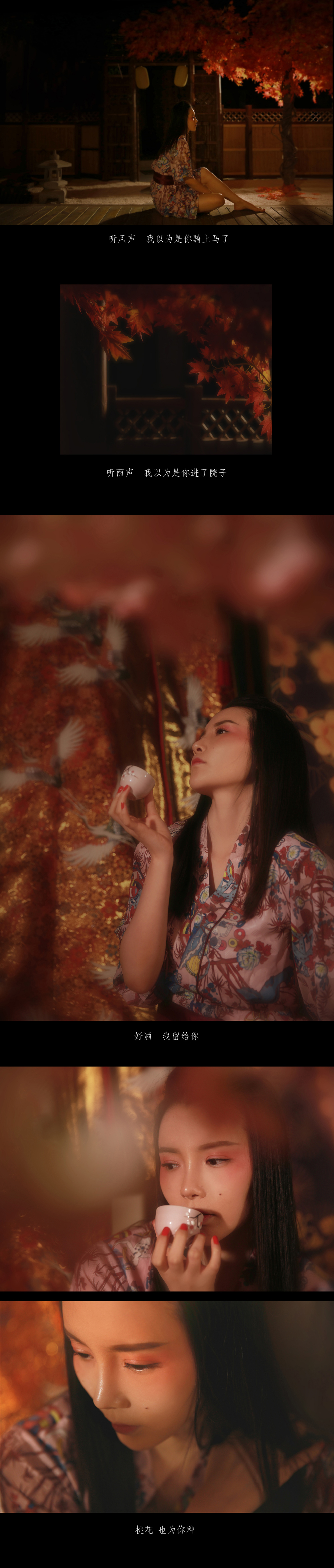 《赤寒》,摄影+设计:@摄影师蝈蝈小姐 ,出镜+文字: @琉玄 ,妆发:@朱建武-Milo (约片QQ:79248661,注明微博约片) 我曾喝过露水酿的好酒/忘了名字/我曾在门前种过两棵树/只记得有一棵是桃树/你叫我等你/却没告诉我在哪儿等你/倒不是为了你画地为牢/外边也没什么好的/听风声/我以为是你骑上马了/听雨声/我以为是你进了院子/好酒/我留给你/桃花/也为你种/今生不见/也愿你这一生/有风雨相伴/孤独终老