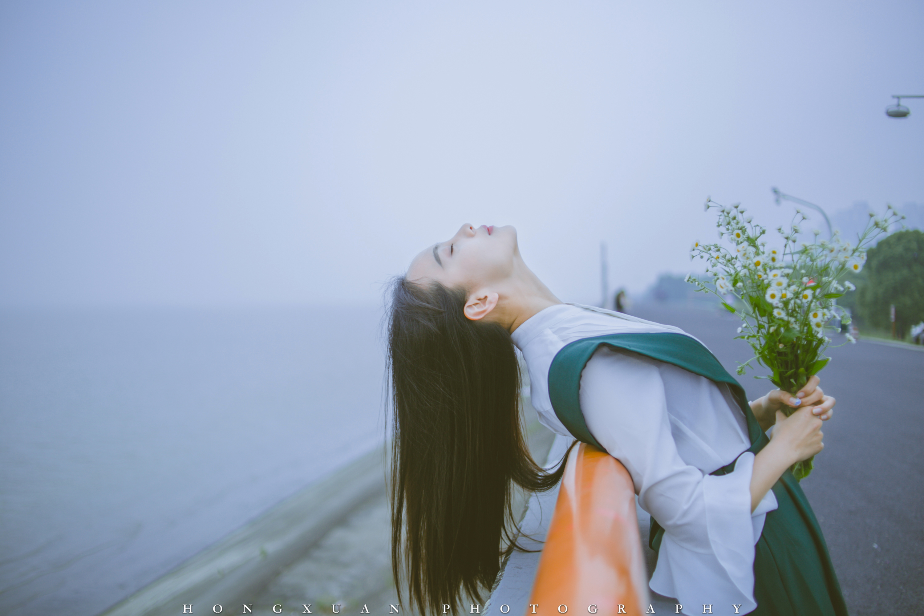 起风了 摄影:洪小漩 出镜:Elaine 认识Elaine很久了,直到一次比赛采访,才算见到她。 姑娘站在那,单薄纤细修长。 那天我们约在了下沙的江边,我为她摘了一束小花,她把花捧在胸口,人比花娇。 起风了,吹起她及腰的长发,真好看。