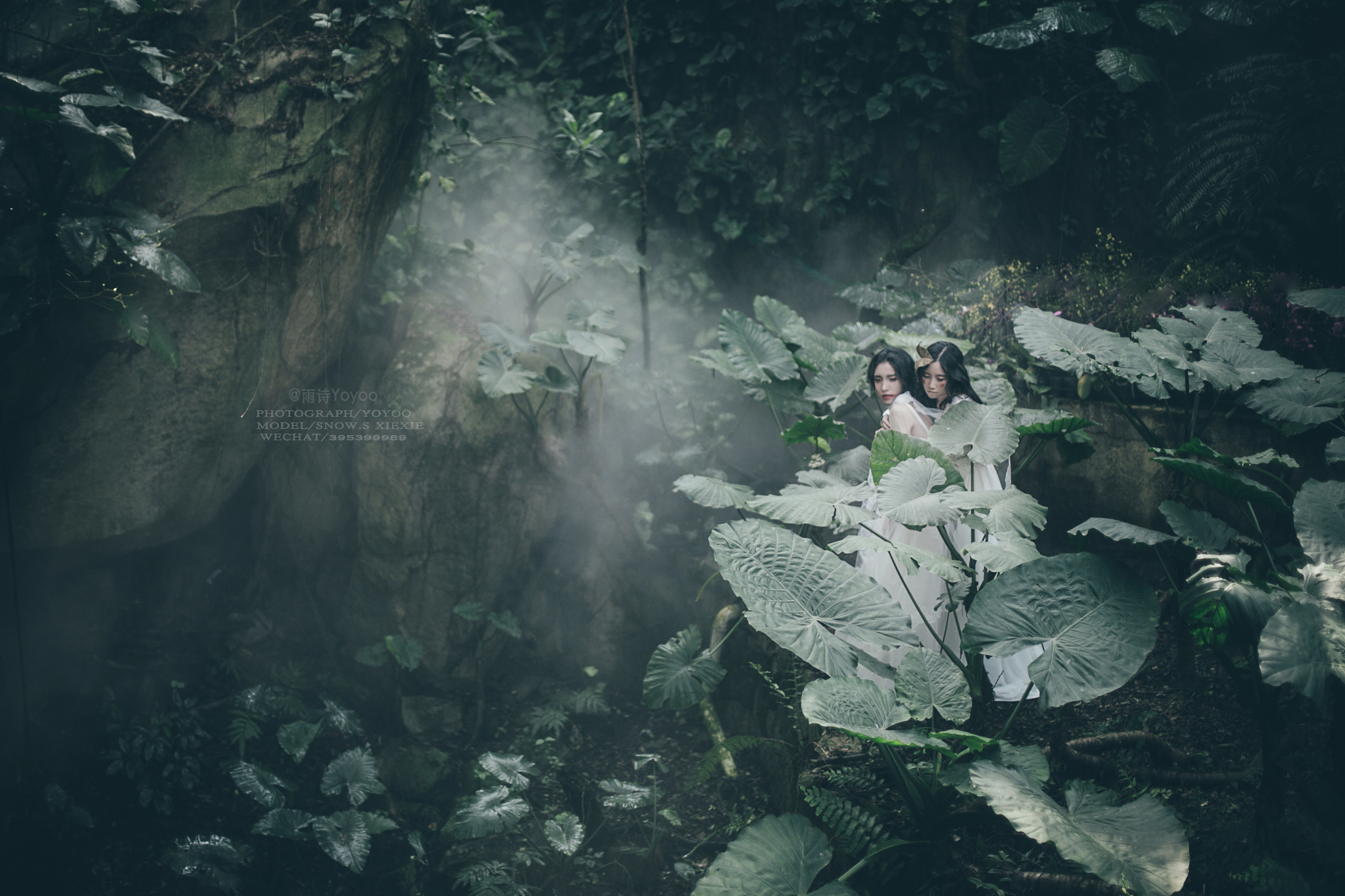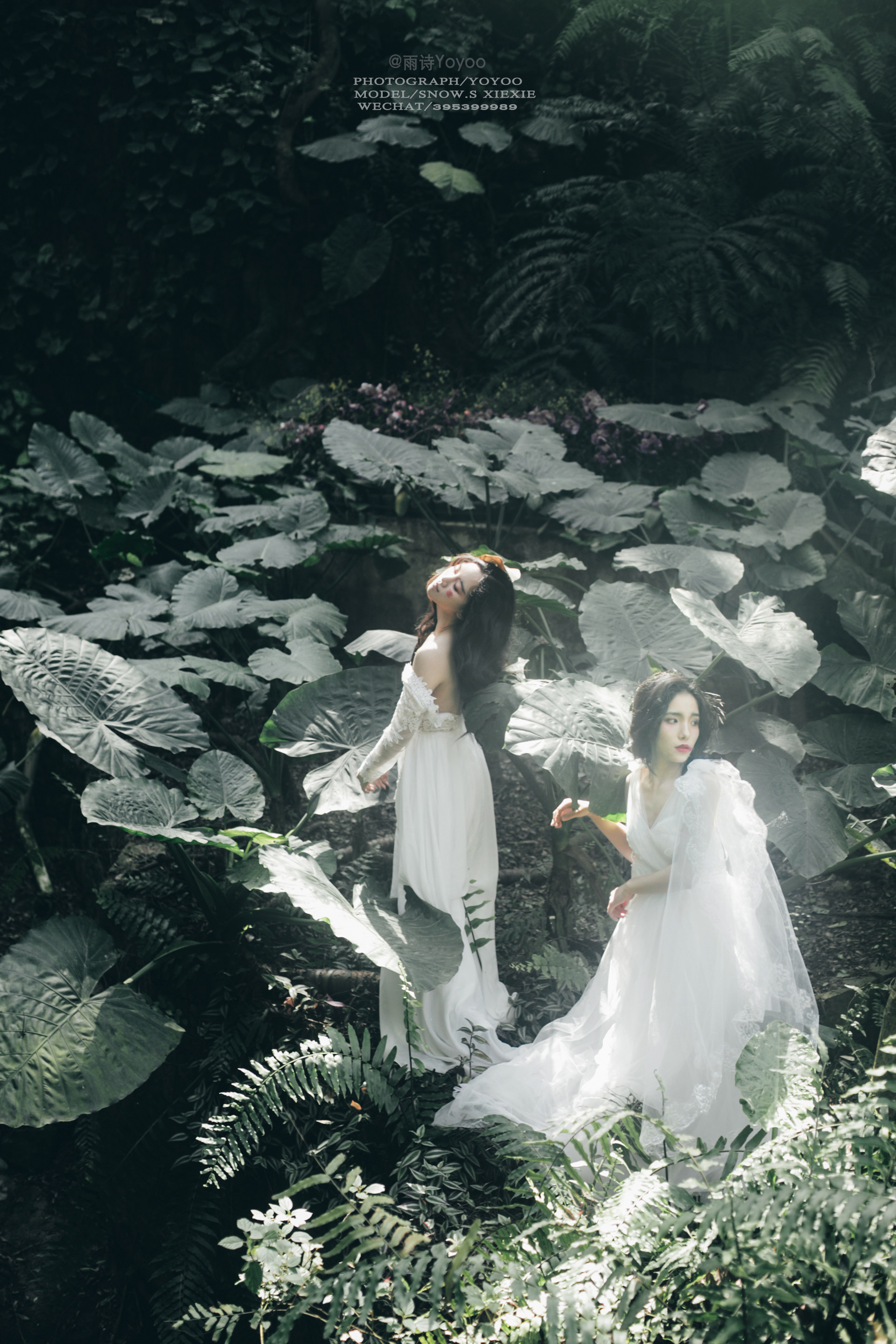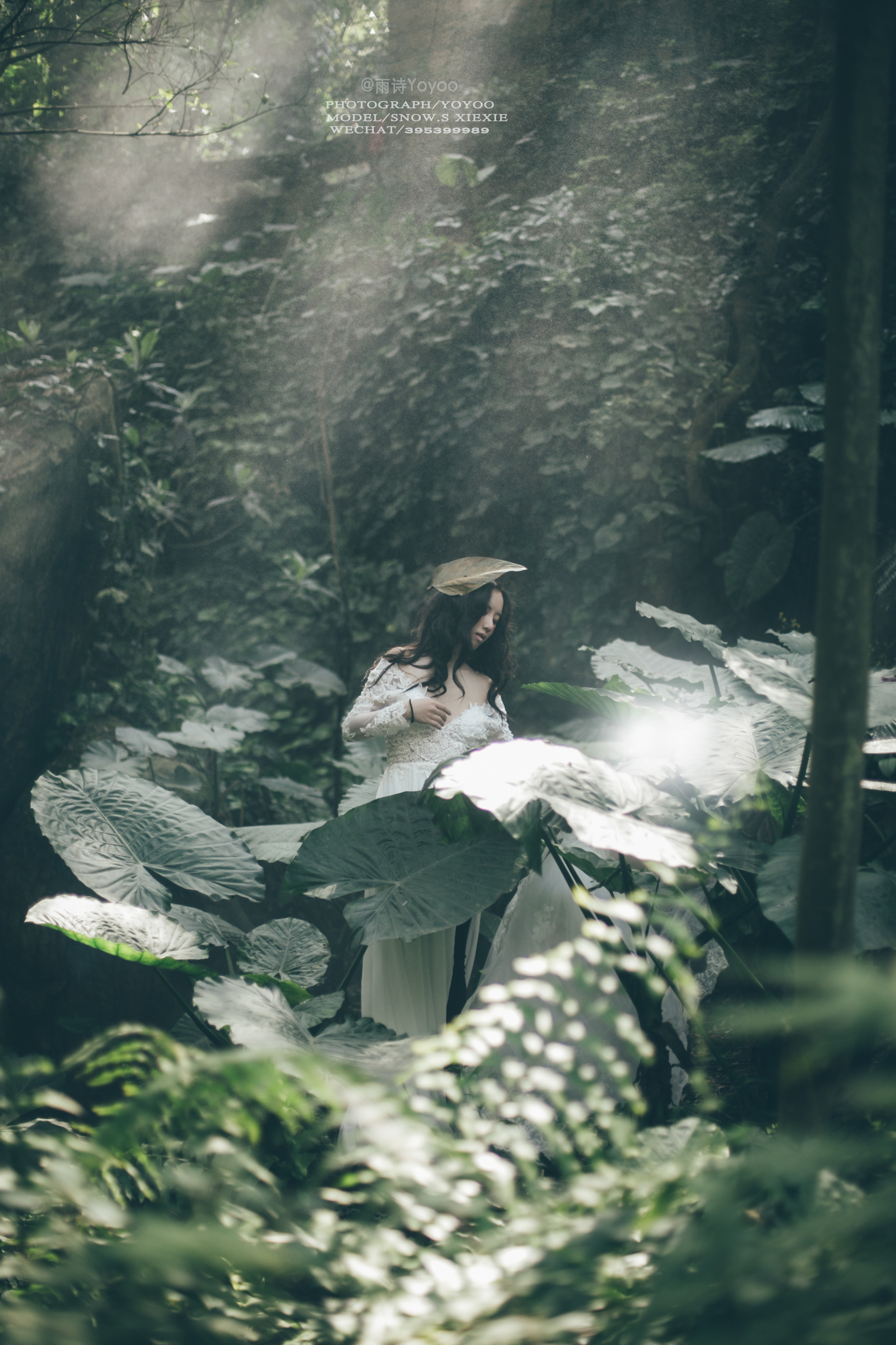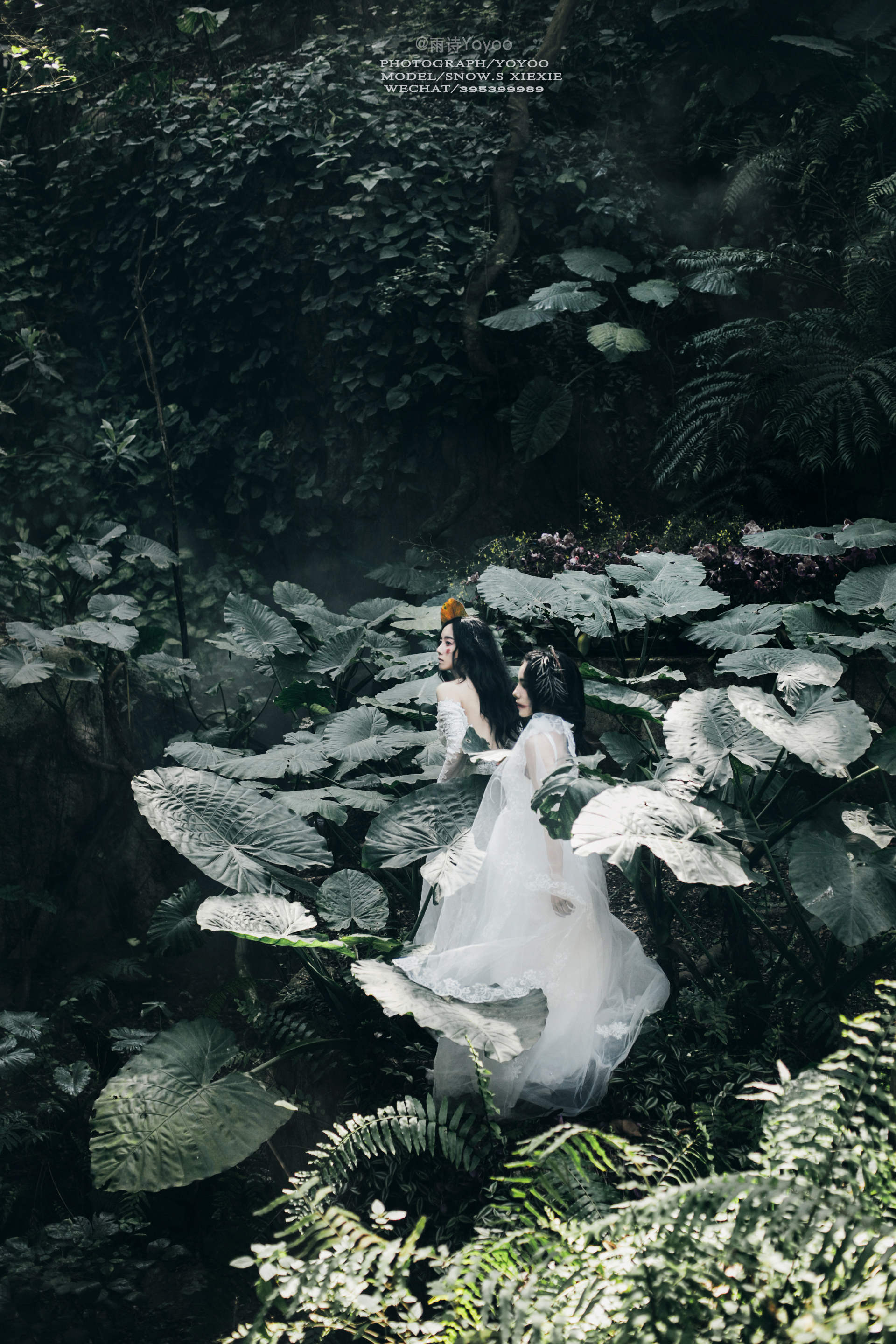 旁边的少女在丛林中留下脚步