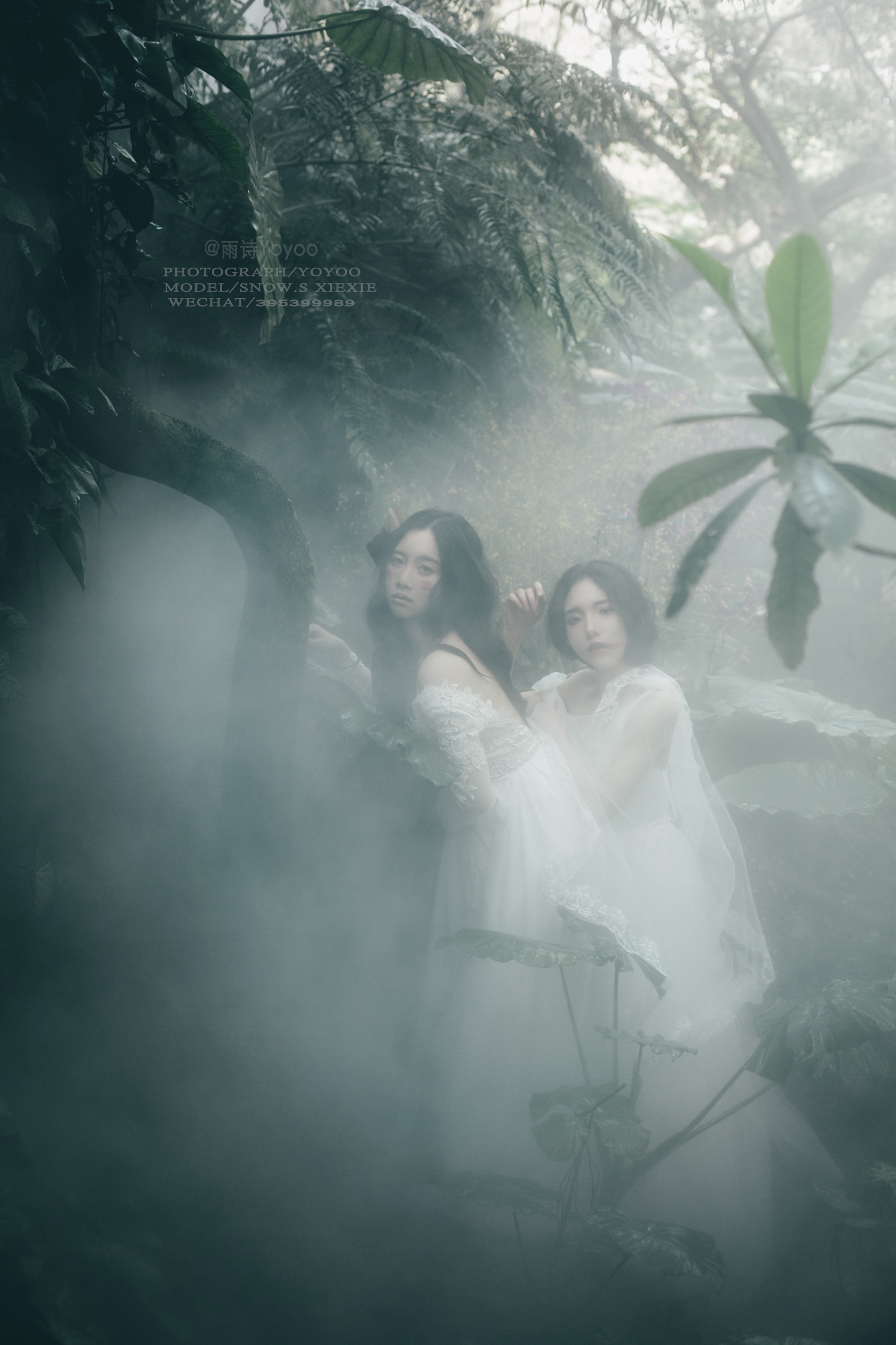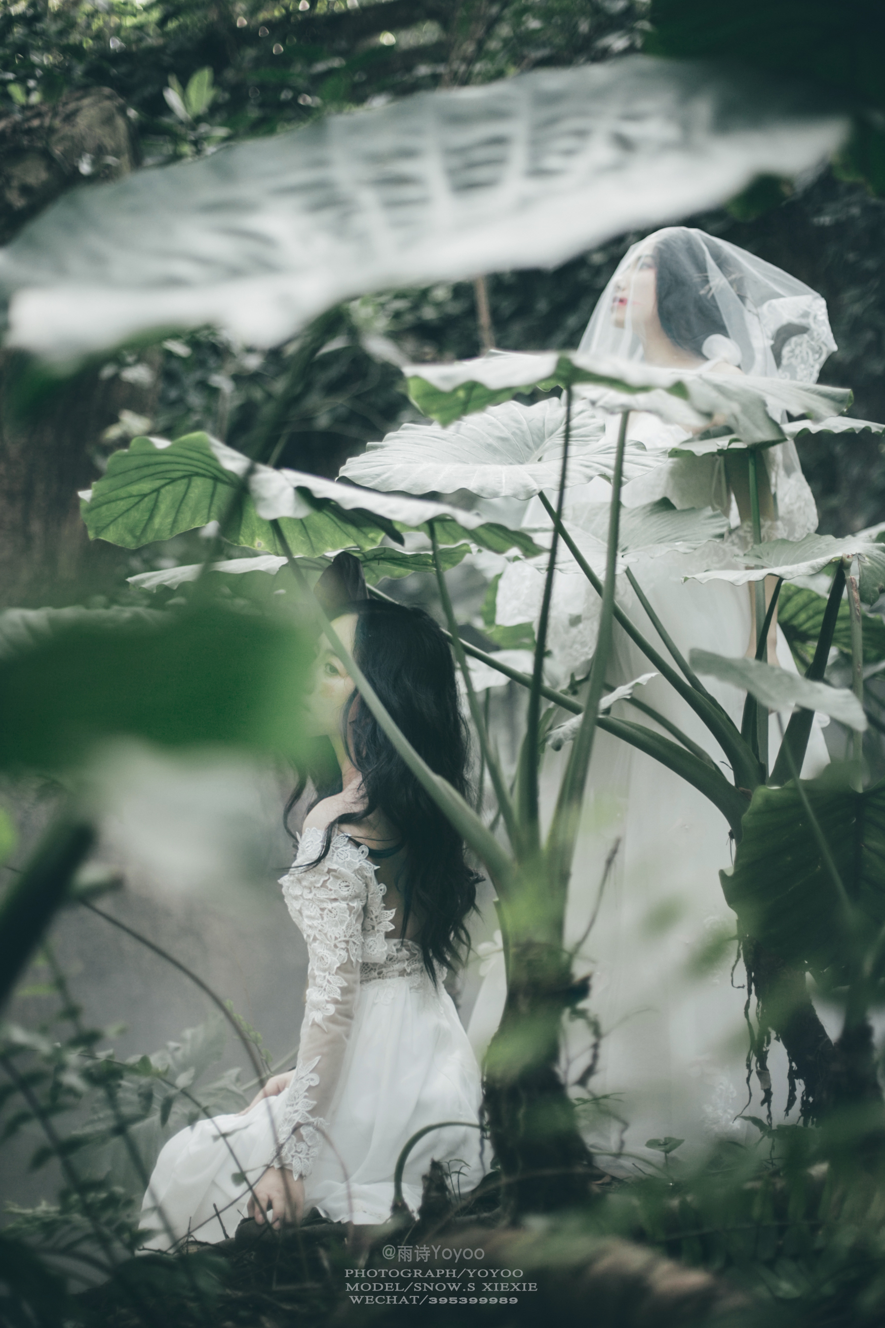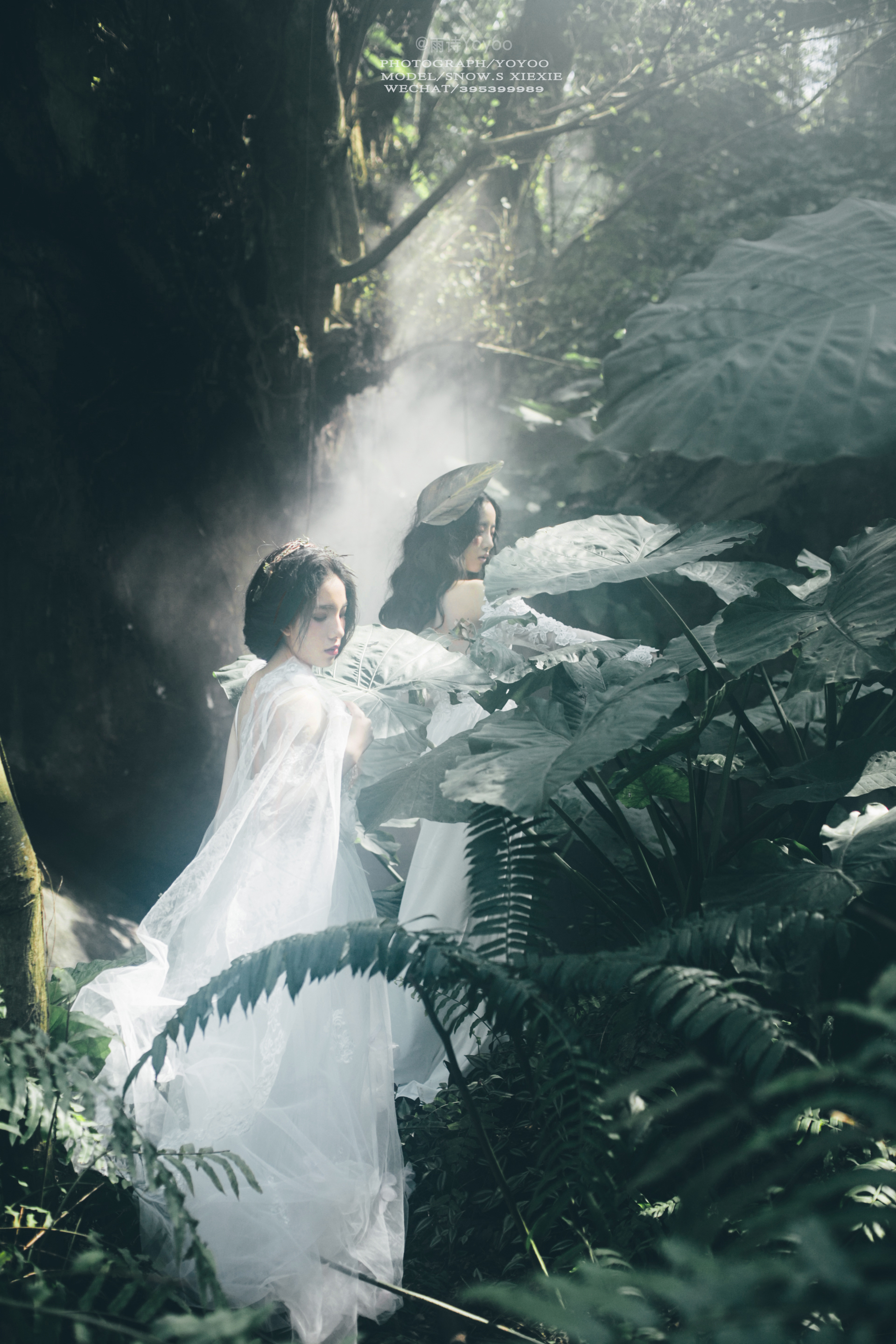 旁边的少女在丛林中留下脚步