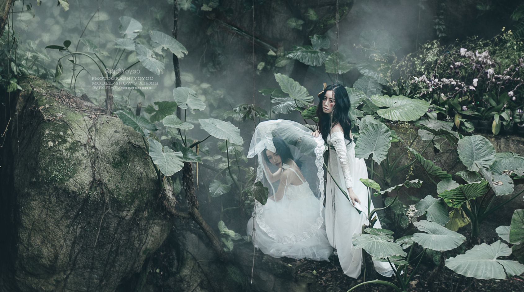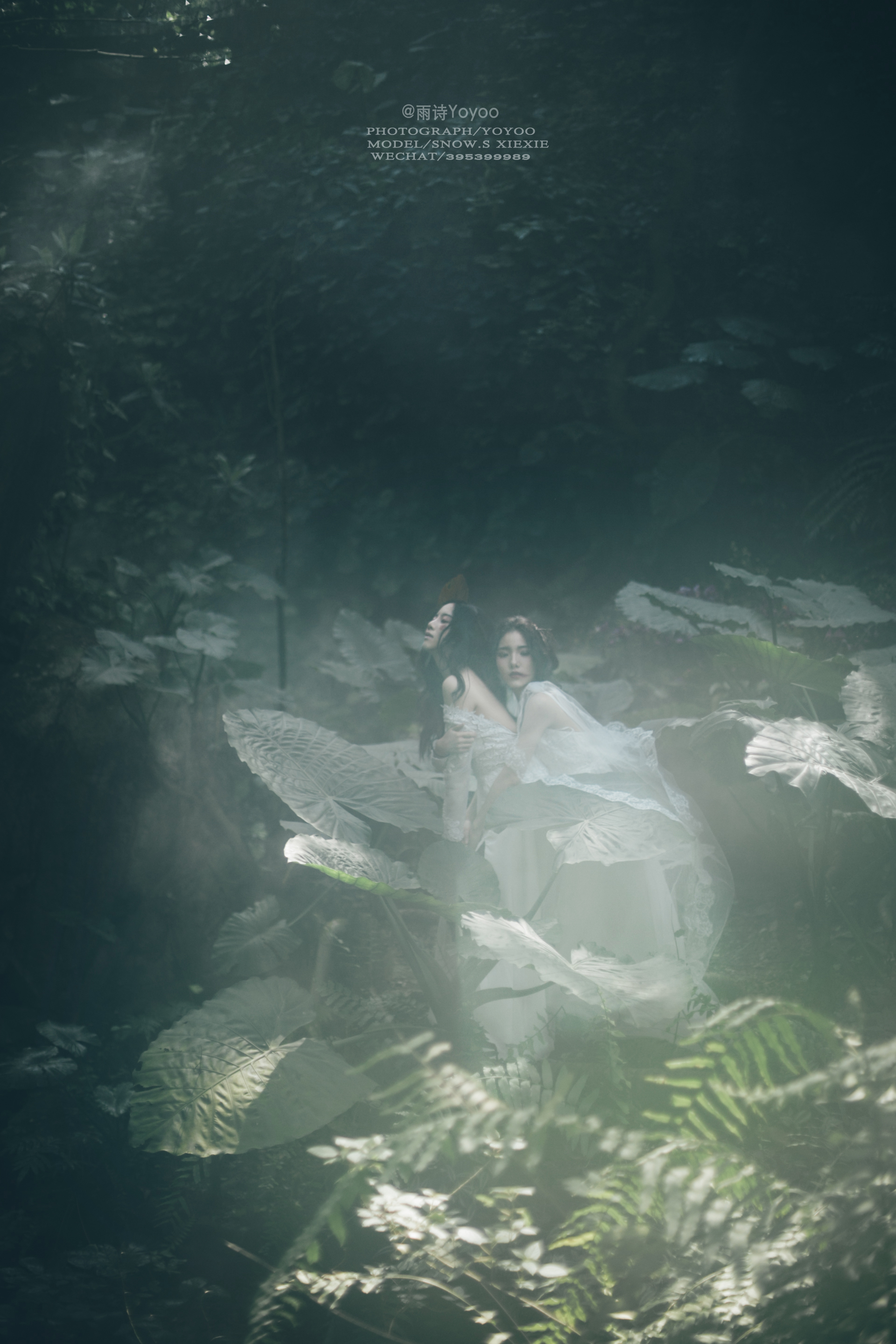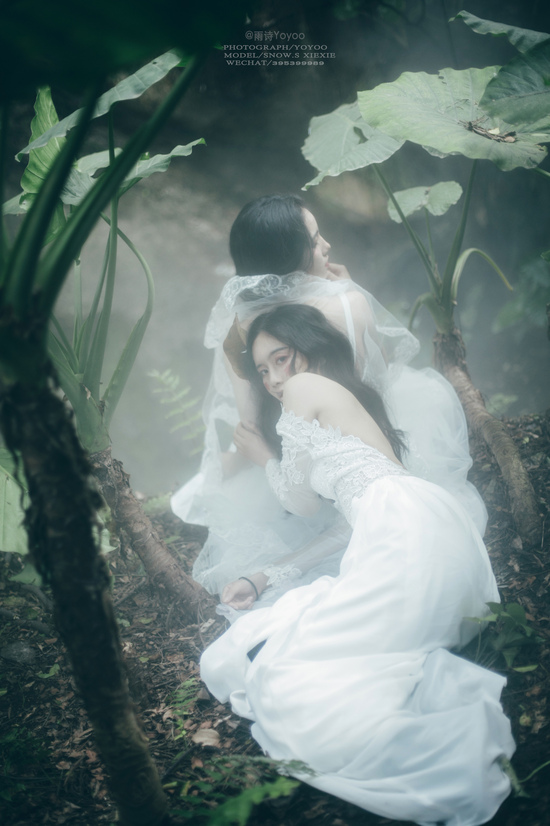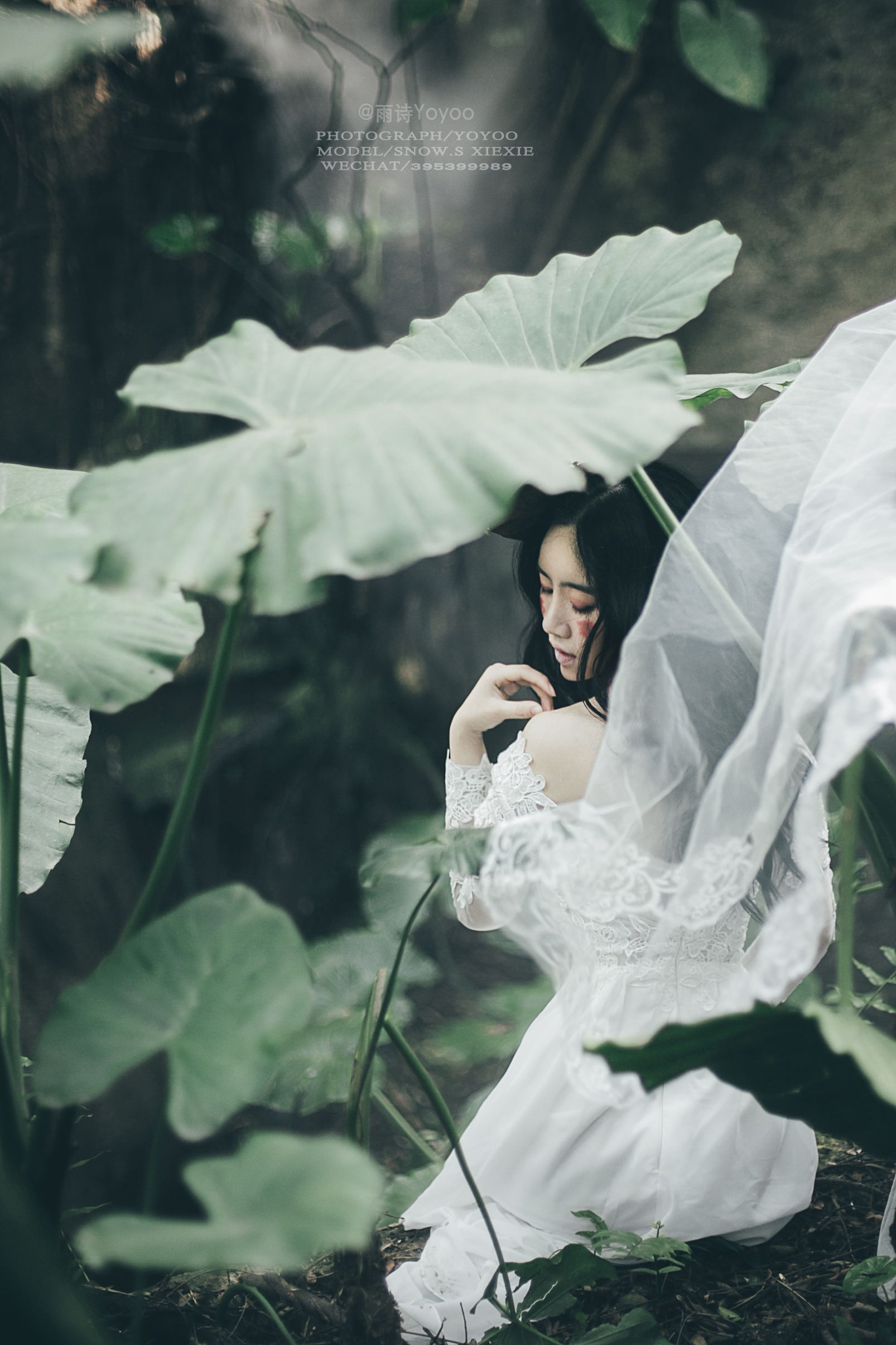 旁边的少女在丛林中留下脚步