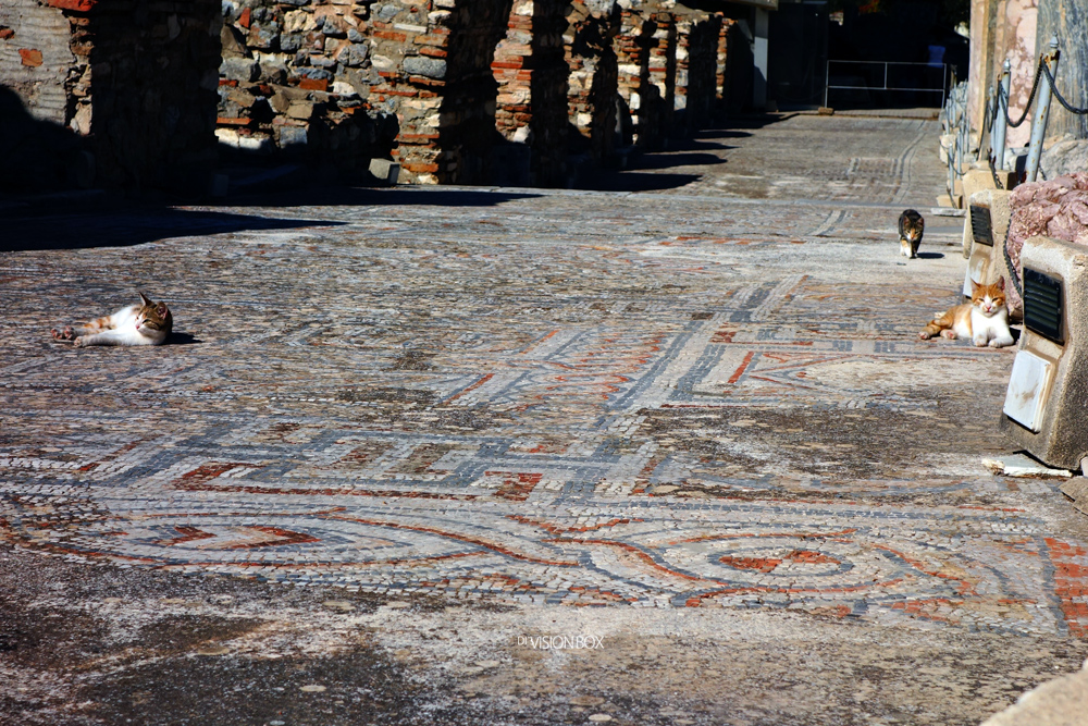 在几千年前的罗马城市遗迹上,布满了这些闲适的灵气十足的猫儿们,让彼此的气质交融影像着。地面上的马赛克砖是马赛克的起源。