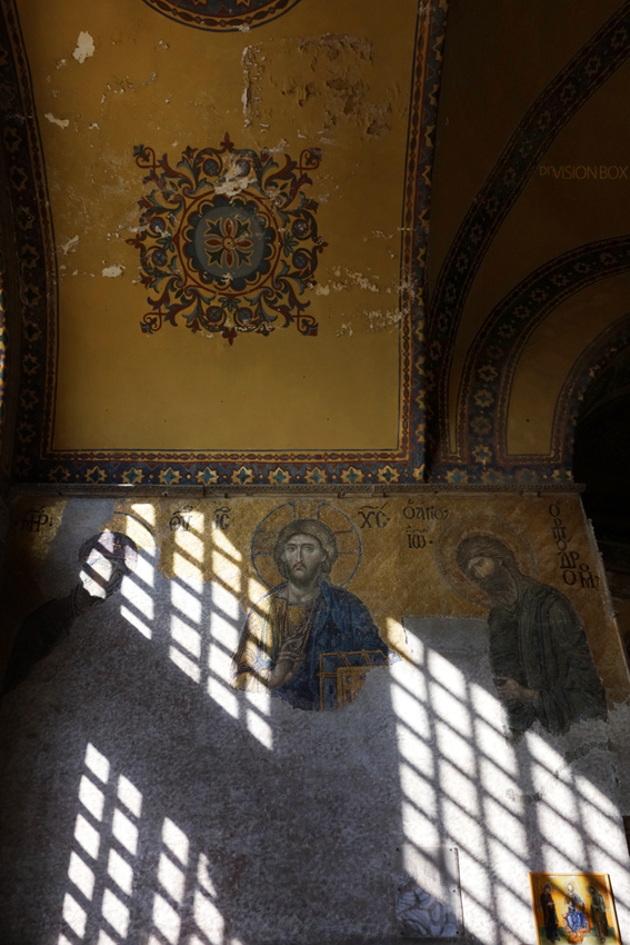 圣索菲亚教堂里,1500年前的马赛克拼贴壁画,略带的装饰风格甚为好看