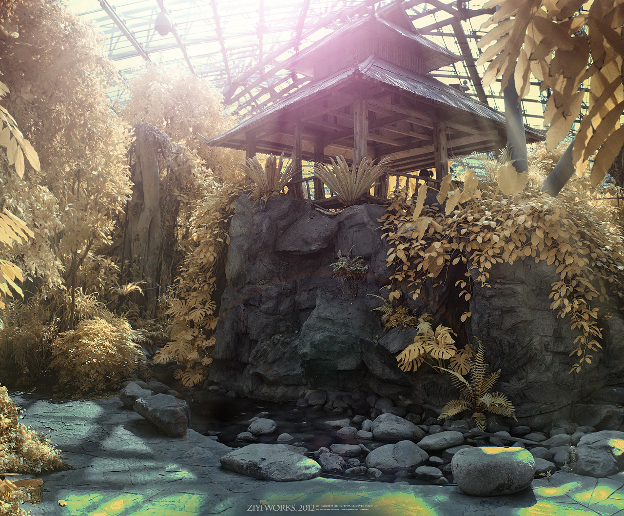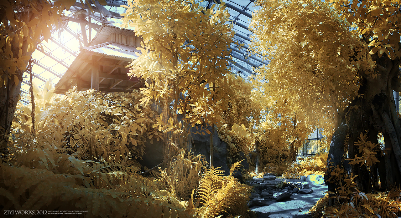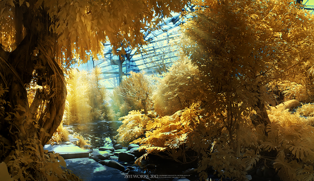 钢架玻璃下的植物