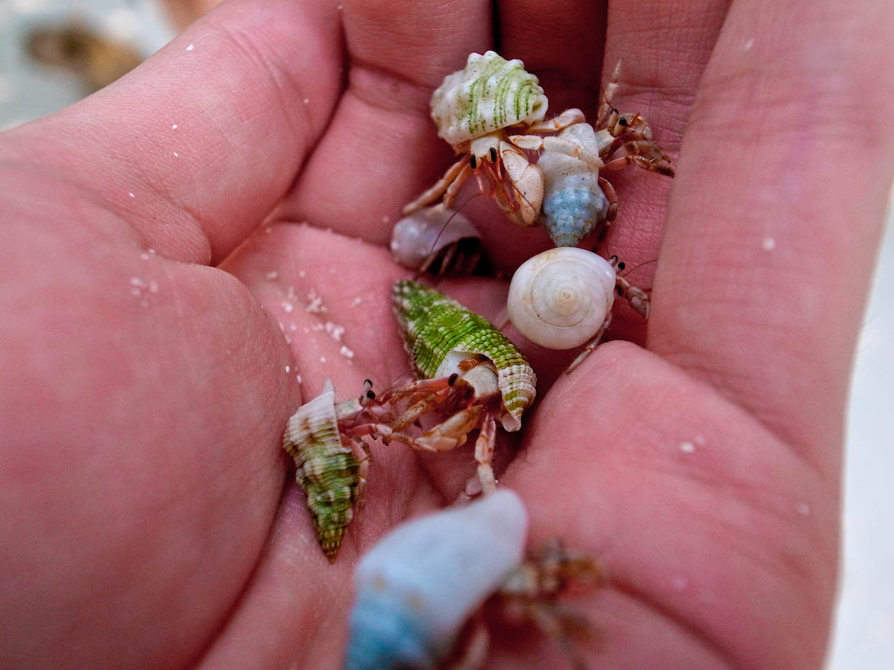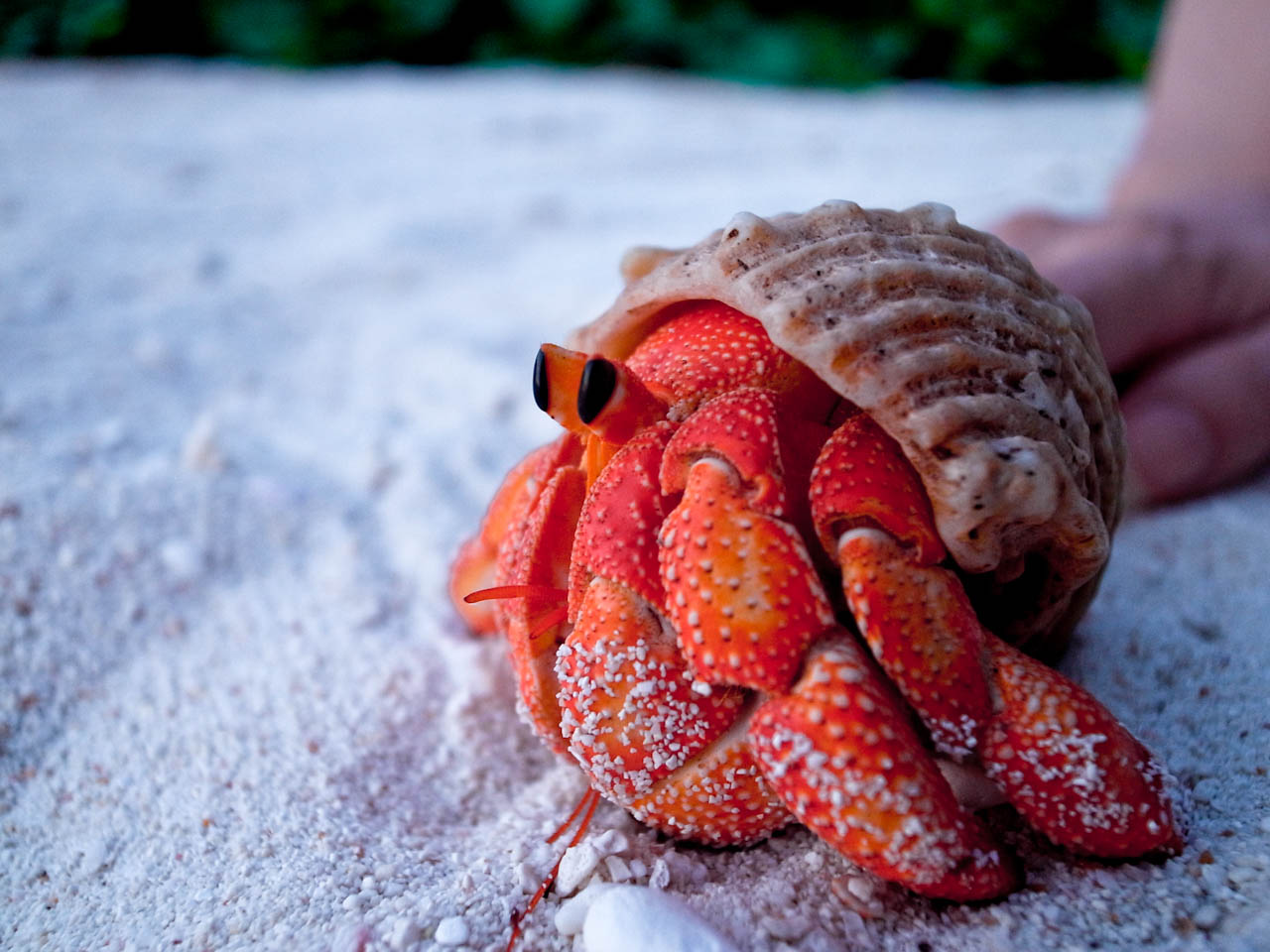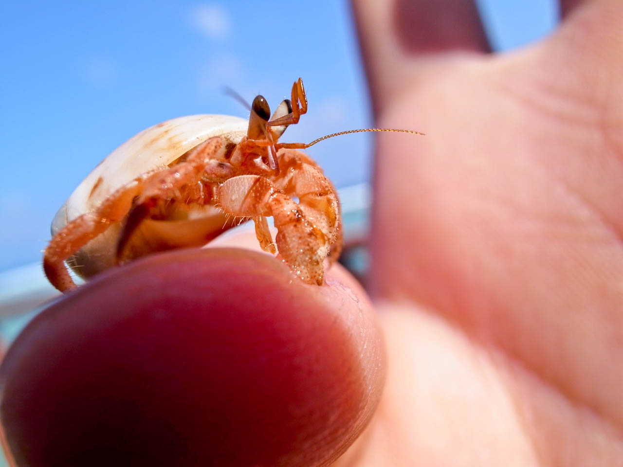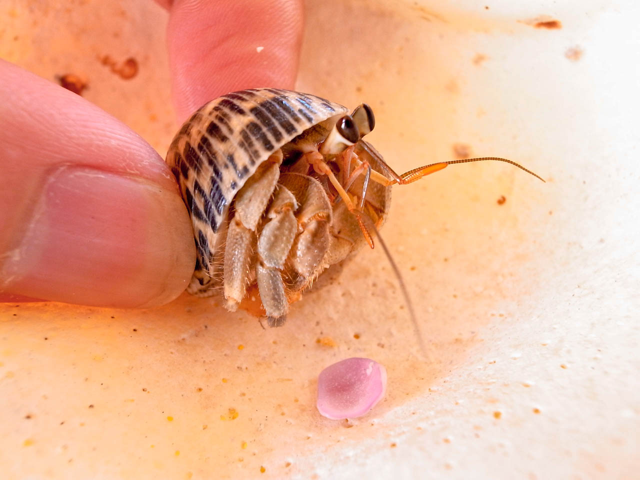 这只手里还死命抓着我们给它的零食渣渣,原来寄居蟹吃零食的?