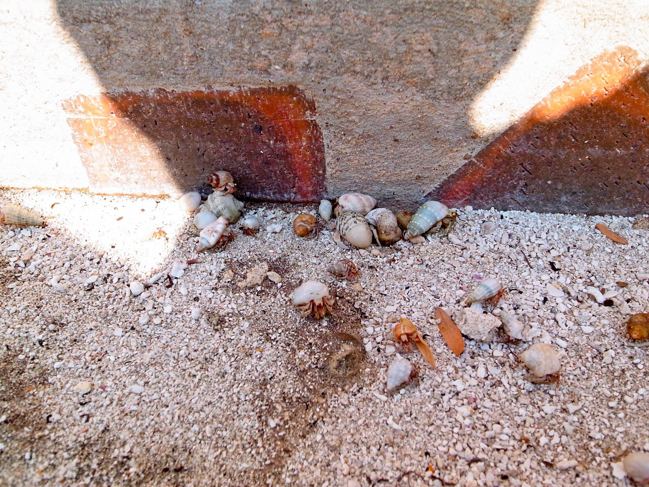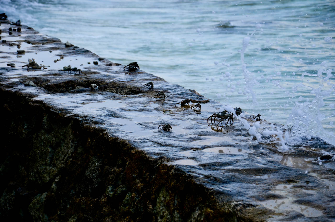 螃蟹们聚在一起吹海风。