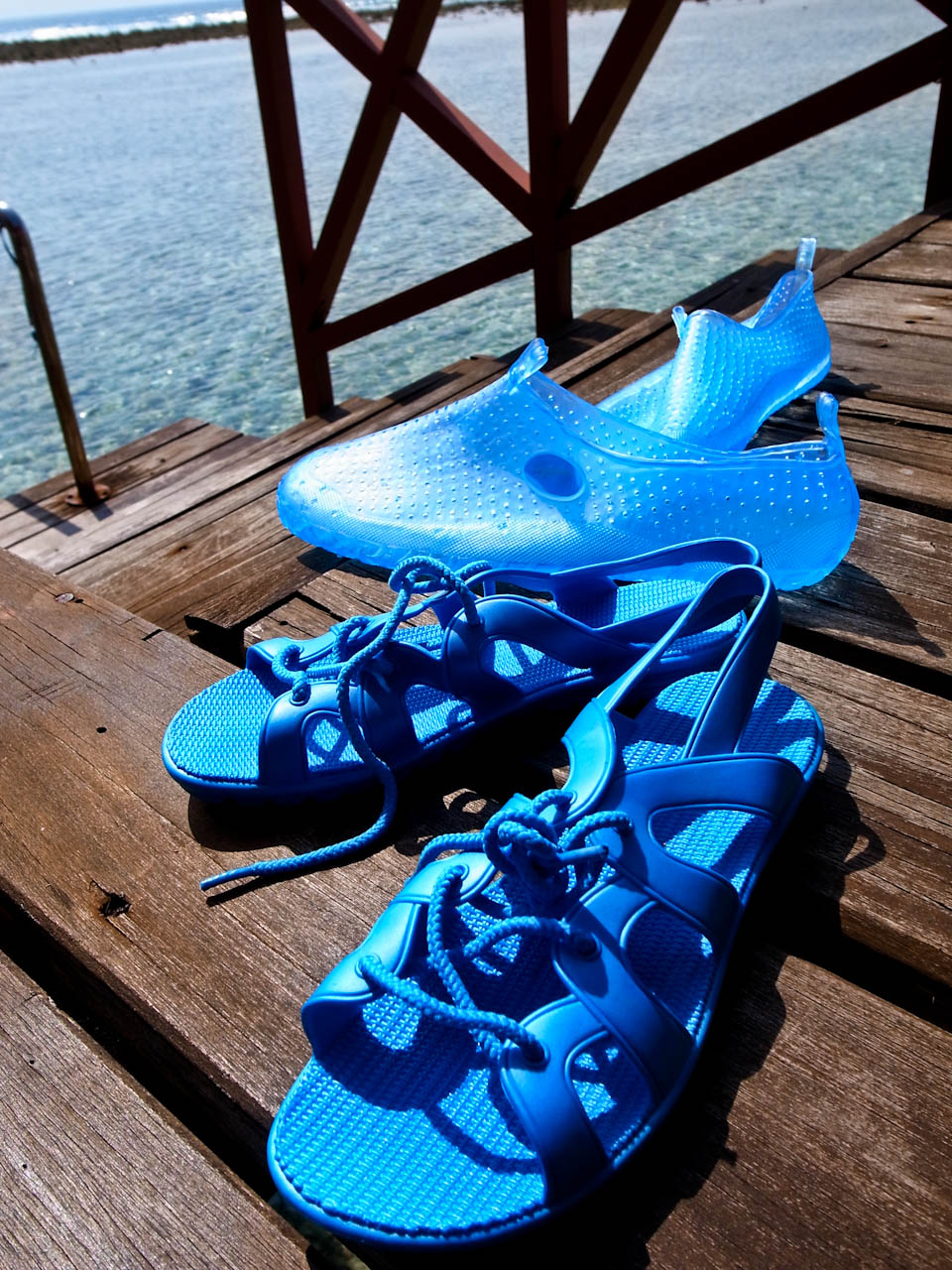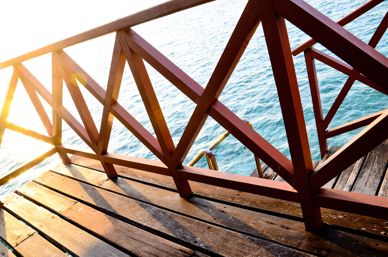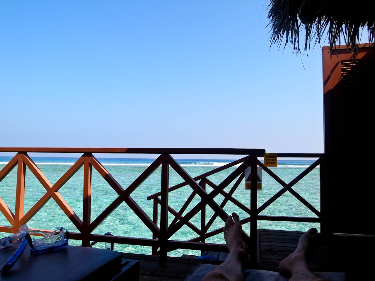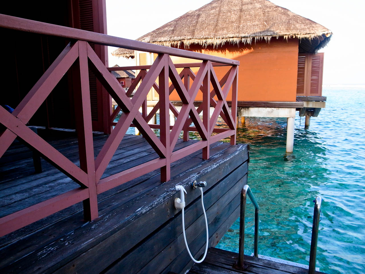 每个水上屋都可以直接下海,楼梯的位置还有冲水的喷头,很方便。