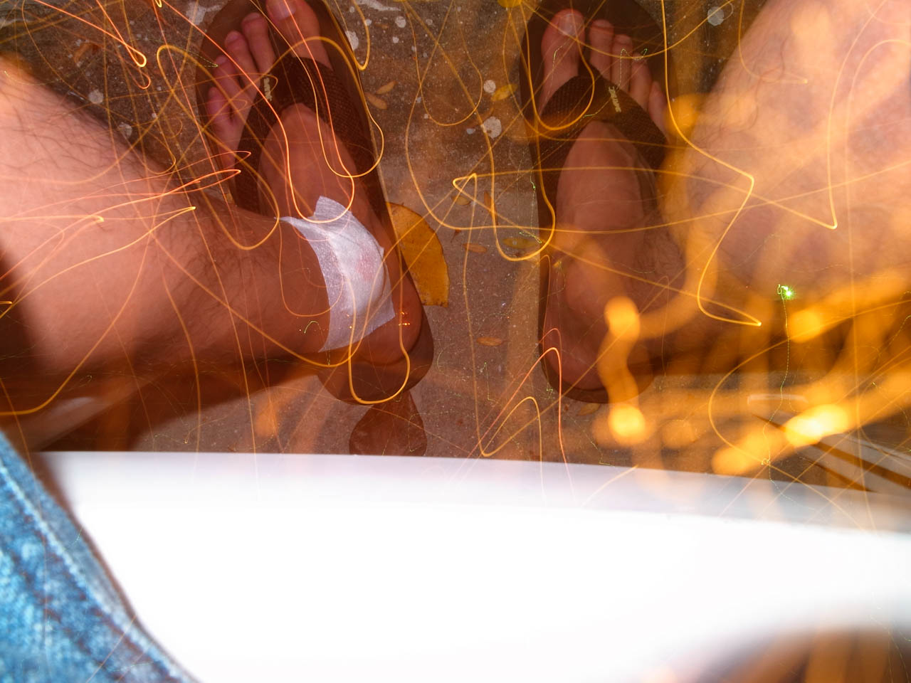 长曝光+闪光灯,脚已经包扎好了,20美金...