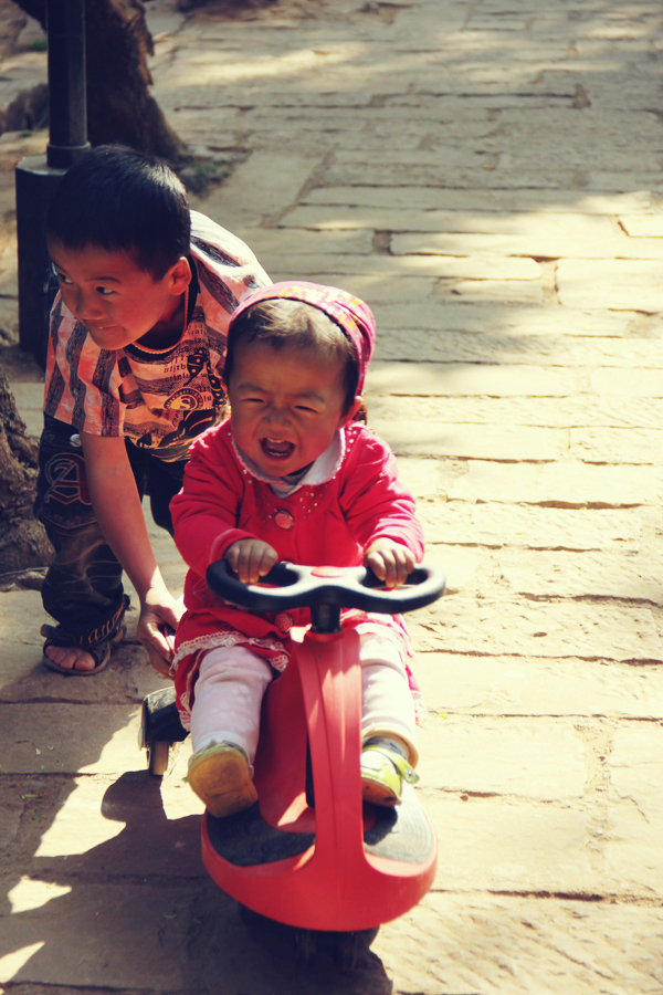离开沙溪的那个上午 看到了这兄妹两哥哥推着妹妹 妹妹开心的笑着 小孩子的快乐真是让人羡慕